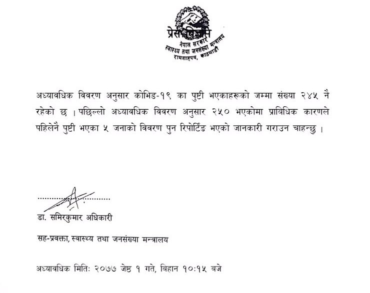 कोरोना संक्रमितको संख्या २४५ मात्रै
