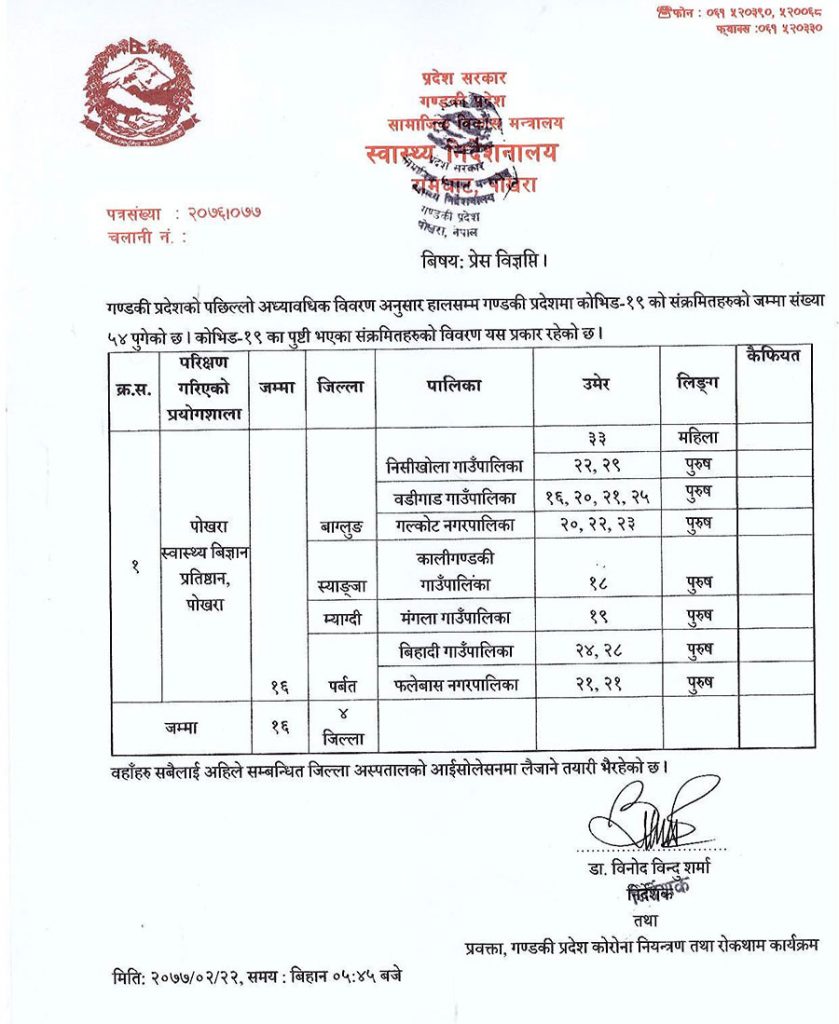 गण्डकी प्रदेशमा थप १६ जनामा कोरोना संक्रमण