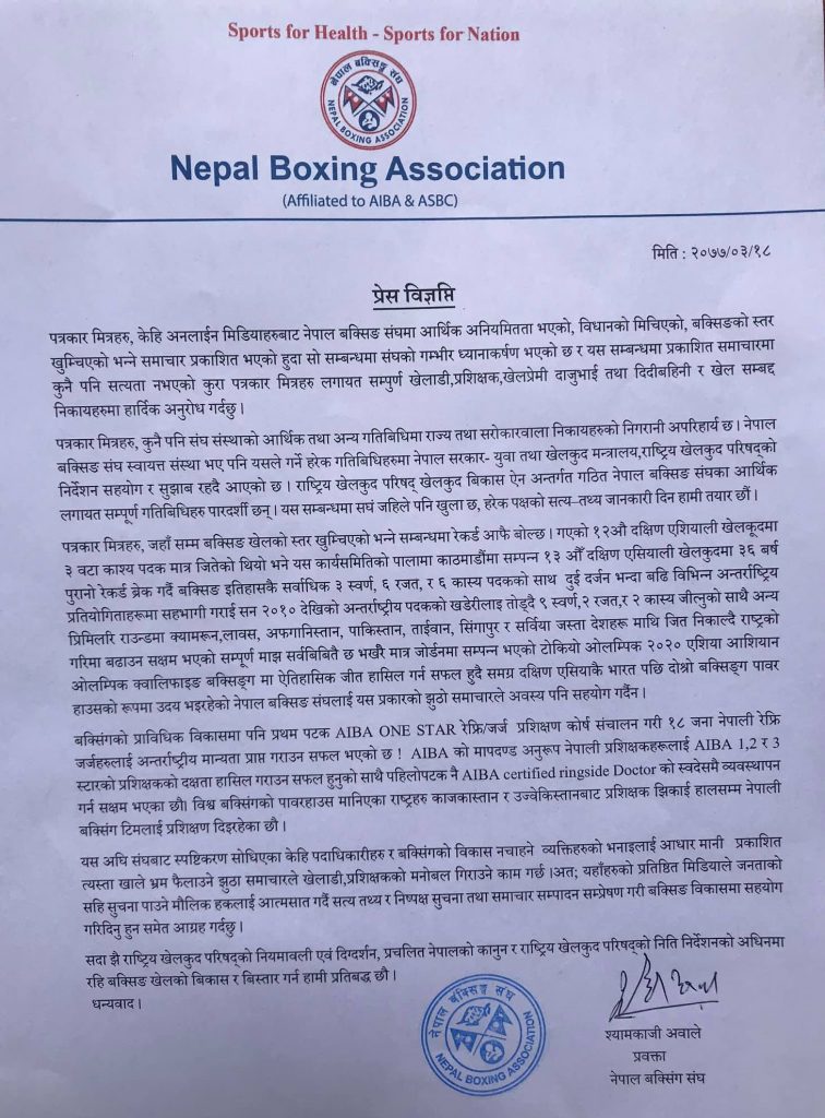 सुरुमा सञ्चार माध्यम र सञ्चारकर्मीको नामै किटेर विज्ञप्ति निकालिएको थियो । त्यसबाट संघ उल्टै विवादमा फस्ने देखिएपछि फेरि अर्को विज्ञप्ति निकालिएको थियो । त्यो विज्ञप्ति पनि सबै खेलकुद पत्रकारलाई नपठाई श्याम अवालेले आफ्ना नजिकका केही पत्रकारलाई इमेलमा पठाएका थिए भने ४० भन्दा बढीलाई ट्याग गर्दै फेसबुकमा पोस्टाएका थिए । उनले फेसबुकमा राखेको विज्ञप्तिमा उल्टै ‘नेगेटिभ’ कमेन्ट्स आउन थालेपछि उनीहरु थप तनावमा परेको बुझिएको छ ।