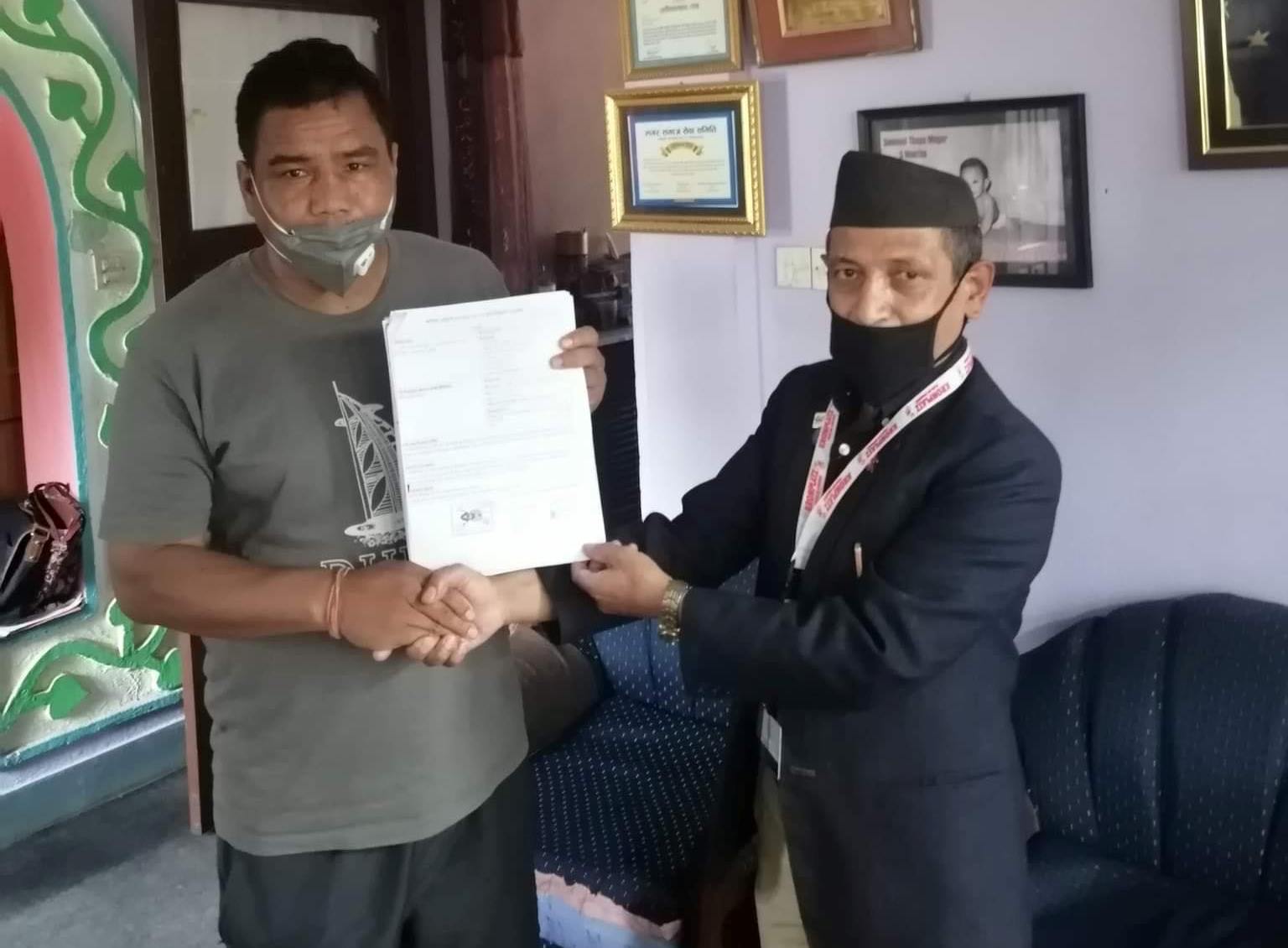 पूर्व बक्सर ओमनारायणले गरिदिए खेलाडीको कोरोना बीमा