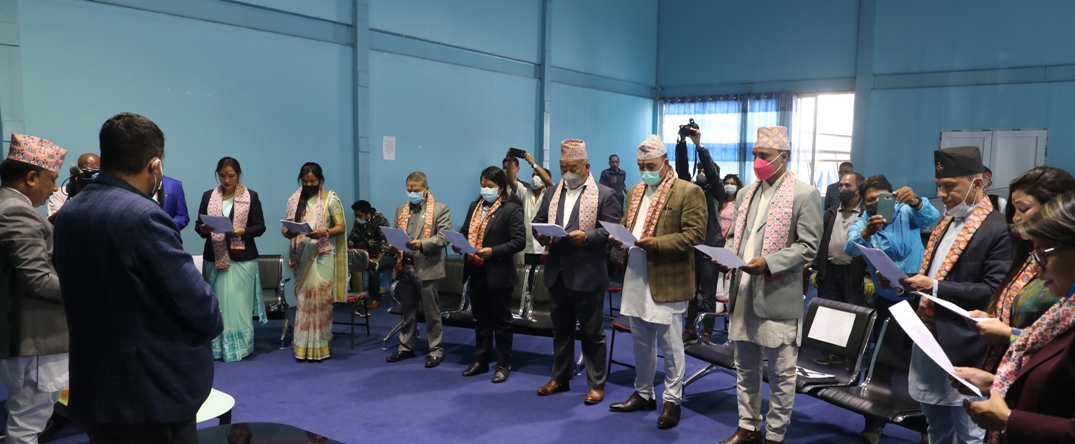 काठमाडौं : राष्ट्रिय खेलकुद परिषद् (राखेप) का नवनियुक्त बोर्ड सदस्यहरुले सोमबार शपथ ग्रहण गरेका छन् । राखेपका अध्यक्ष समेत रहेका युवा तथा खेलकुद मन्त्री जगतबहादुर सुनार (विश्वकर्मा) ले नवनियुक्त ११ बोर्ड सदस्यलाई पद तथा गोपनीयताको शपथ ग्रहण गराए ।