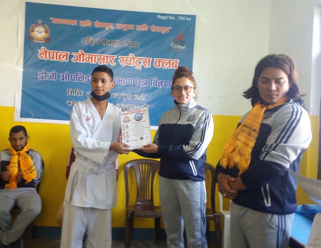 क्लब उद्घाटनकै अवसरमा हालै भारतमा आयोजना भएको अनलाइन मार्सल आर्ट्स च्याम्पियनसिपका पदक विजेता खेलाडीलाई प्रमाणपत्र वितरण गरिएको थियो । उक्त च्याम्पियनसिपमा नेपालले नौ स्वर्ण, दुई रजत र तीन कांस्य पदक जितेको थियो ।