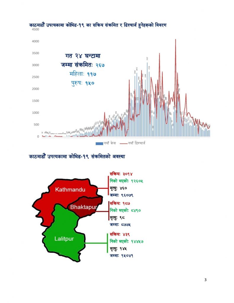त्यस्तै काठमाडौं उपत्यकामा २६७ जनालाई कोरोना संक्रमण पोजिटिभ देखिएको स्वास्थ्य मन्त्रालयले जनाएको छ ।