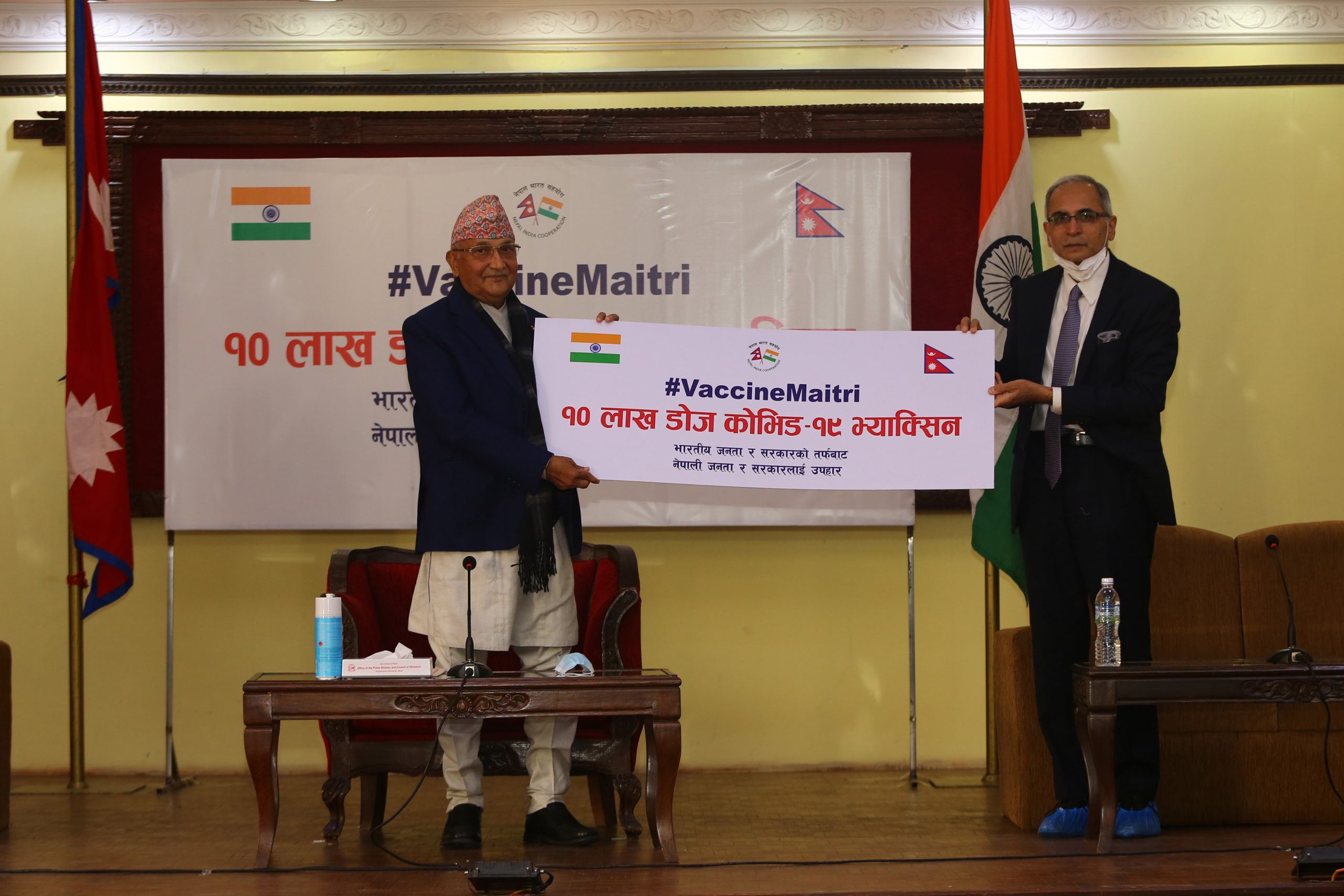 खोप हस्तान्तरण कार्यक्रममा भारतीय राजदूत क्वात्राले भारत सरकारको सहयोग निरन्तर हुने बताए। भारतले छिमेक पहिलो नीतिलाई प्राथमिकता दिएको उनको भनाइ थियो। बिहीबार मात्र भारतबाट आइपुगेको कोभिसिल्ड खोप भारतले सेरम इन्स्टिच्युट अफ इन्डियाले अक्सफोर्ड विश्वविद्यालय र बेलायती औषधि निर्माता कम्पनी एस्ट्राजेनेकासँग मिलेर विकास गरेको हो। भारतले यो खोप नेपाललाई अनुदानमा उपलब्ध गराएको हो।