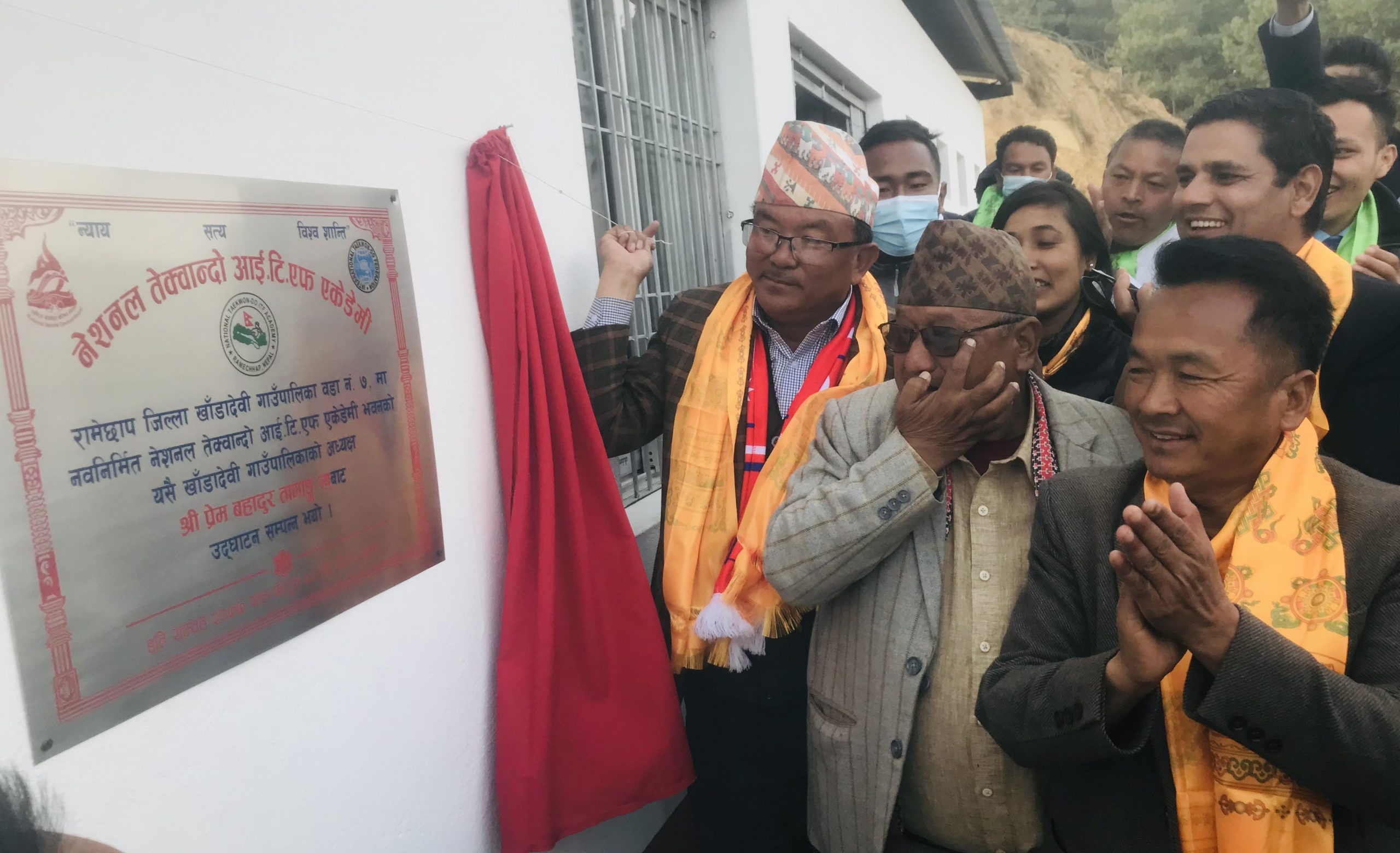 रामेछाप : रामेछापको खाडाँदेवी गाउँपालिकामा एक करोड ११ लाख रुपैयाँको लागतमा आईटीएफको राष्ट्रिय तेक्वान्दो एकेडेमी निर्माण भएको छ । खाँडादेवी गाउँपालिकास्थित गाल्पा बजारमा केन्द्र सरकार, प्रदेश सरकार र स्थानीय सरकारको संयुक्त लगानीमा एकेडेमी निर्माण भएको हो । एकेडेमीले दुई रोपनी क्षेत्रफल ओगटेको नेपाल अन्तर्राष्ट्रिय तेक्वान्दो महासंघका केन्द्रीय सदस्य एवं रामेछाप तेक्वान्दो संघका अध्यक्ष रूपसिंह मोक्तानले जानकारी दिए । चेन्जिङ हल, बाथ रुम, अफिस रूमलगायत सेवा सुविधासहितको एकेडेमी निर्माण भएको छ ।