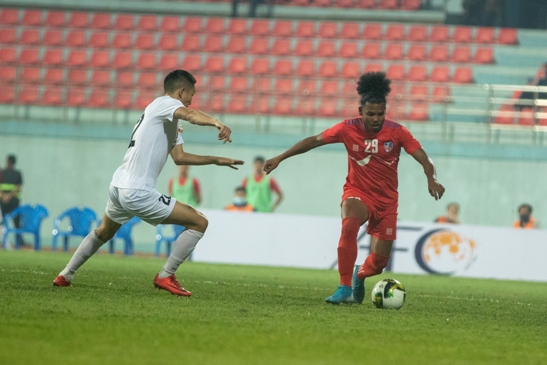 काठमाडौं : त्रिदेशीय अन्तर्राष्ट्रिय फुटबल प्रतियोगितामा नेपालले किर्गिस्तानको यू–२३ ओलम्पिक टोलीसँग गोलरहित बराबरी खेलेको छ । दशरथ रंगशालामा बिहीबार भएको खेलमा नेपाल १० खेलाडीमा समेटिको किर्गिस्तानसँग गोलरहित बराबरीमा रोकिएको हो । खेलको सुरुवातदेखि नै लगातार पोस्ट् आक्रमणको अवसर बनाएको नेपालले एक दर्जन मौका खेर फालेको थियो ।