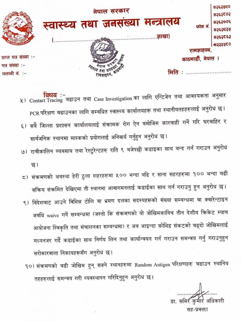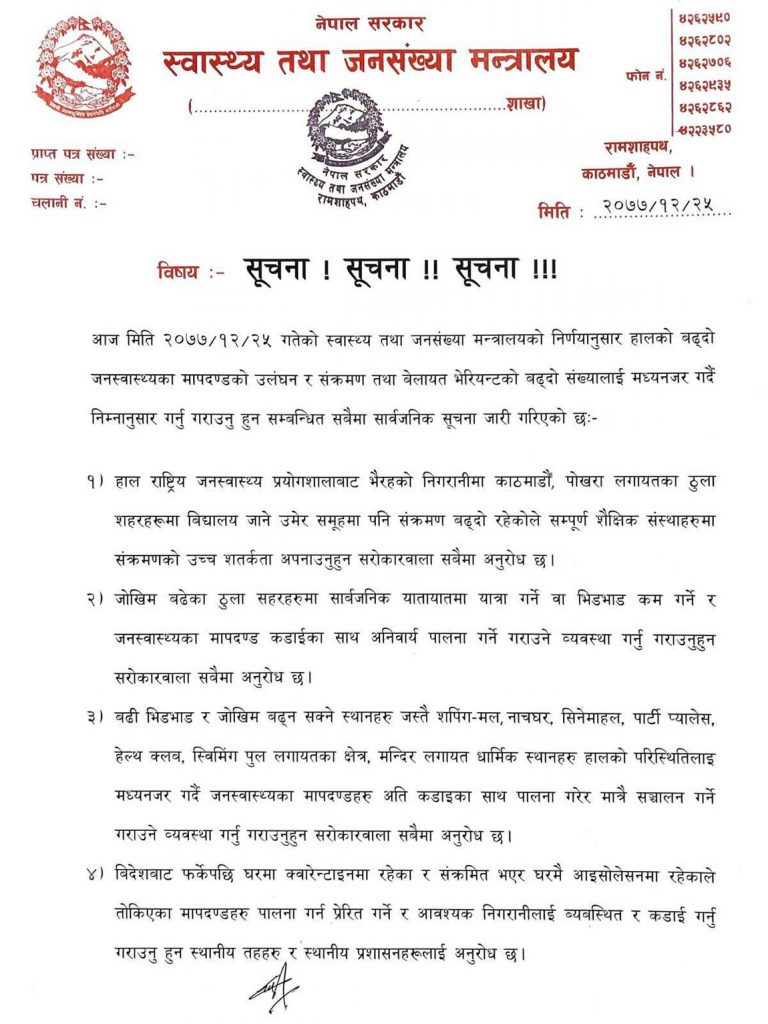 सबै जिल्ला प्रशासन कार्यालयलाई संक्रामक रोग ऐन बमोजिम कारबाही गरेर सार्वजनिक स्थलमा मास्को प्रयोग अनिवार्य गर्न भनेको हो ।