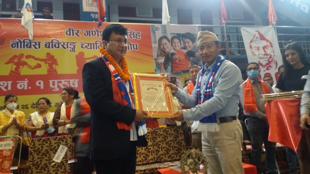 नगरप्रमुख राईले निवर्तमान अध्यक्ष राजीव श्रेष्ठ र केन्द्रीय सदस्य ओमनारायण श्रेष्ठले नेपाली बक्सिङको विकासमा पु¥याएको योगदान अतुलनीय रहेको बताए ।