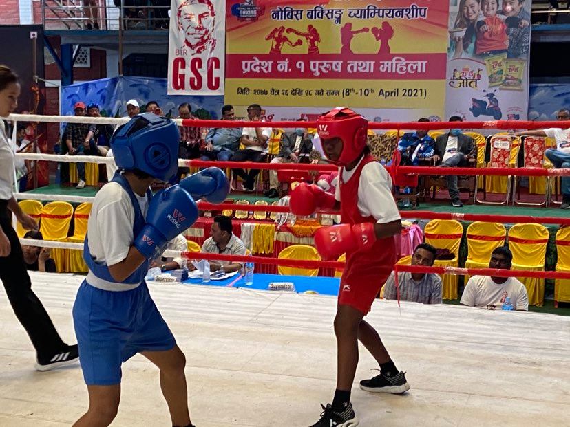 धरान : झापाकी अविगेल निरौला र धरानकी रामकुमारी लिम्बू ‘वीर गणेशमान सिंह प्रदेश १ स्तरीय नोभिस बक्सिङ प्रतियोगिता’को फाइनलमा प्रवेश गरेका छन् । धरानमा जारी प्रतियोगिताको महिला ४८ केजी तौलसमूहमा अविगेलले दमककी अनुशाा खवास र रामकुमारीले दमककै इष्मा मोखिमलाई पराजित गर्दै फाइनलमा स्थान बनाएका हुन् ।