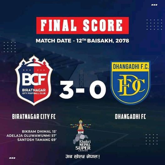 खेलको १६ औं मिनेटमा बिक्रमले गोल गर्दै टोलीलाई अग्रता दिलाएका थिए । पेनाल्टी क्षेत्रभित्र धनगढीका डिफेन्डरले क्लियर गर्न नसकेको बलमा बिक्रमले सदुपयोग गरे ।