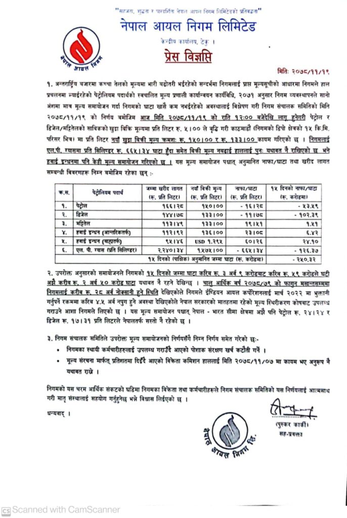 यो मूल्य समायोजनपछि पनि निगमलाई १५ दिनमा २ अर्ब ५० करोड घाटा हुने सह-प्रवक्ता पुष्कर कार्कीले बताए । फागुनसम्म मात्रै निगमलाई २८ अर्ब नोक्सानी हुने देखिएको निगमले विज्ञप्तिमा उल्लेख गरेको छ ।