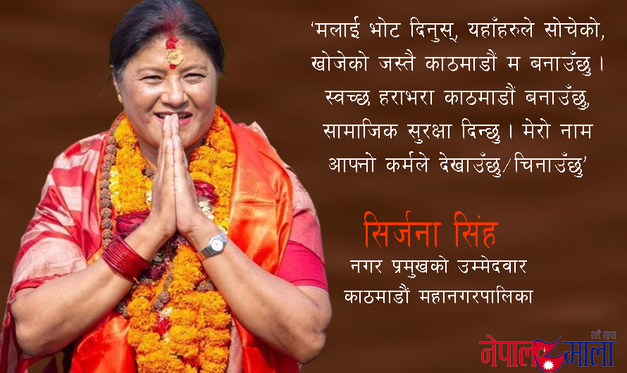 काठमाडौंको मेयरमा टिकट पाउनुमा सिंह परिवारको सदस्य मात्र नभएर आफ्नै राजनीतिक योगदानको पनि भूमिका भएको उनको तर्क छ । उनी भन्छिन्, ‘यो देशमा प्रजातन्त्र ल्याउन, महिलाहरुको उत्थान गर्न मैले संघर्ष गरेकी छु ।’