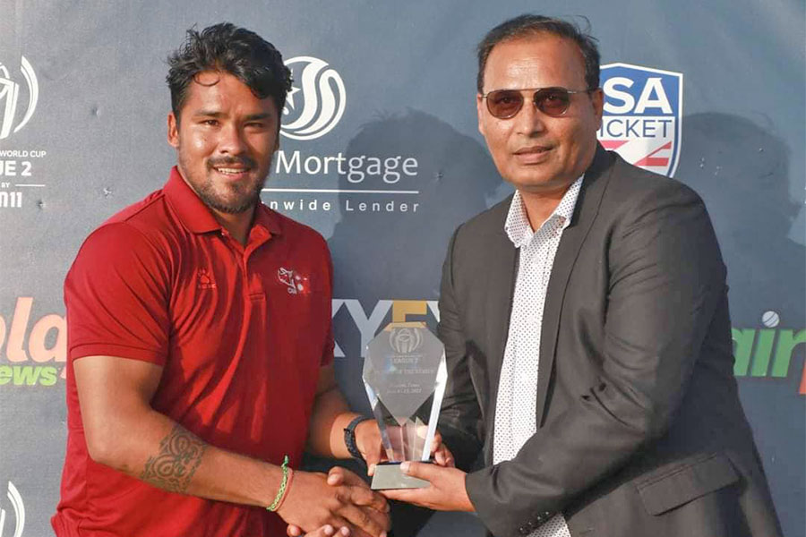 काठमाडौं : आईसीसी क्रिकेट विश्वकप लिग-टु अन्तर्गत अमेरिकामा भएको त्रिकोणात्मक शृङ्खलामा नेपालका करण केसी प्लेयर अफ द सिरिज घोषित भएका छन् । टेक्ससमा बिहीबार सम्पन्न सिरिजमा उत्कृष्ट बलिङ गरेका करण प्लेयर अफ द सिरिज बनेमा हुन् । अमेरिकाविरुद्ध अन्तिम खेलमा ३ विकेट लिएका करणले शृङ्खलामा कुल १३ विकेट लिएका थिए । उनले ओमानविरुद्ध दुवै खेलमा ५-५ विकेट लिएका थिए भने अमेरिकाविरुद्ध पहिलो खेलमा विकेट लिन सकेनन् । ब्याटिङमा भने यस पटक करणको ब्याट चलेन । तीमन खेलमा ब्याटिङ गर्दा उनले जम्मा ९ रन मात्र बनाए ।