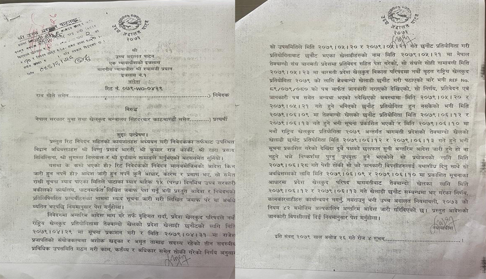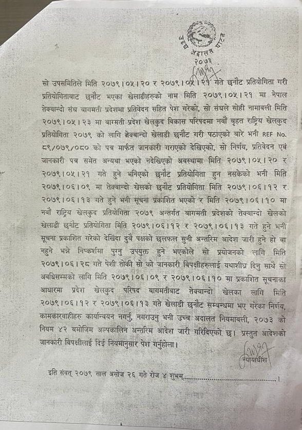 युनियनका तेक्वान्दो खेलाडी सहभागी नगराउन उच्च अदालतको आदेश