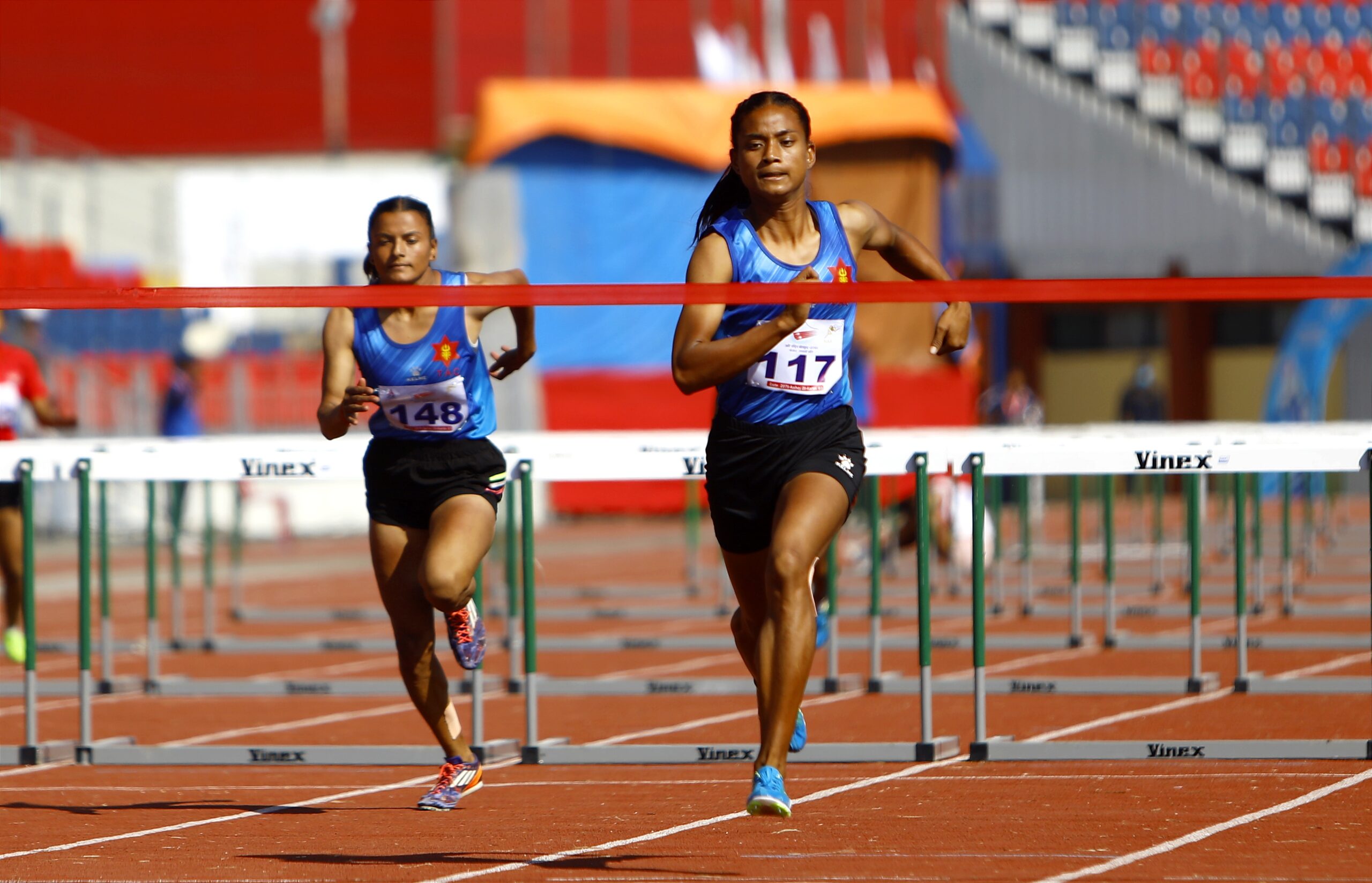 पोखरा : आइतबार महिला ४०० मिटर हडल्समा राष्ट्रिय कीर्तिमानसहित स्वर्ण पदक जितेकी विभागीय टोली त्रिभुवन आर्मी क्लबकी जयरानी थारुले सोमबार महिला एक सय मिटर हडल्समा पनि स्वर्ण पदक जितिन् । पोखरा रंगशालामा हिट चरण १५.१६ सेकेन्डमा पूरा गर्दै राष्ट्रिय कीर्तिमान बनाएकी जयरानीले फाइनल स्पर्धामा स्वर्ण पदक जित्न १५.६९ सेकेन्डको समय खर्चिइन् । उनले आफ्नै नाममा रहेको १५.२० सेकेन्डको कीर्तिमान भंग गर्दै नयाँ राष्ट्रिय कीर्तिमान बनाएकी हुन् । २१ वर्षीया जयरानीले ४०० मिटर हडल्समा यसअघि आफैले बनाएको एक मिनेट ०७.०२ सेकेन्डको समयमा सुधार गर्दै एक मिनेट ०४ः१३ सेकेन्डको नयाँ कीर्तिमान बनाएकी थिइन् ।