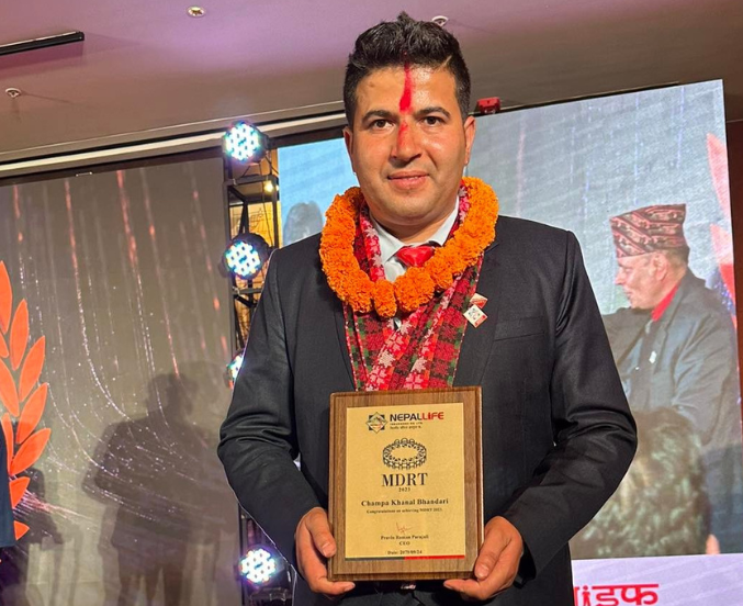 काठमाडाैँ : नेपाल लाइफ इन्स्योरेन्स ताप्लेजुङका विरष्ठ एजेन्सी मेनेजर राजु भण्डारी सम्मानित भएका छन्। ताप्लेजुङबाट पहिलाेपटक बिमा अभिकर्ता सम्बन्धी अन्तर्राष्ट्रिय प्लेटफर्म एमडीआरटी विजेता बन्न सफल राजुलाई नेपाल लाइफले काठमाडाैँमा भव्य कार्यक्रमकाबीच सम्मान गरेकाे हाे। राजुसहित देशभरबाट एमडीआरटी जित्न सफल २४३ जना अभिकर्ता सम्मानित भएका थिए। राजुले ताप्लेजुङसहित इलाम, झापा, माेरङ, सुनसरी र काठमाडाैँलाई समेत कार्यक्षेत्र बनाएर बिमा गराउँदै आएका छन्।