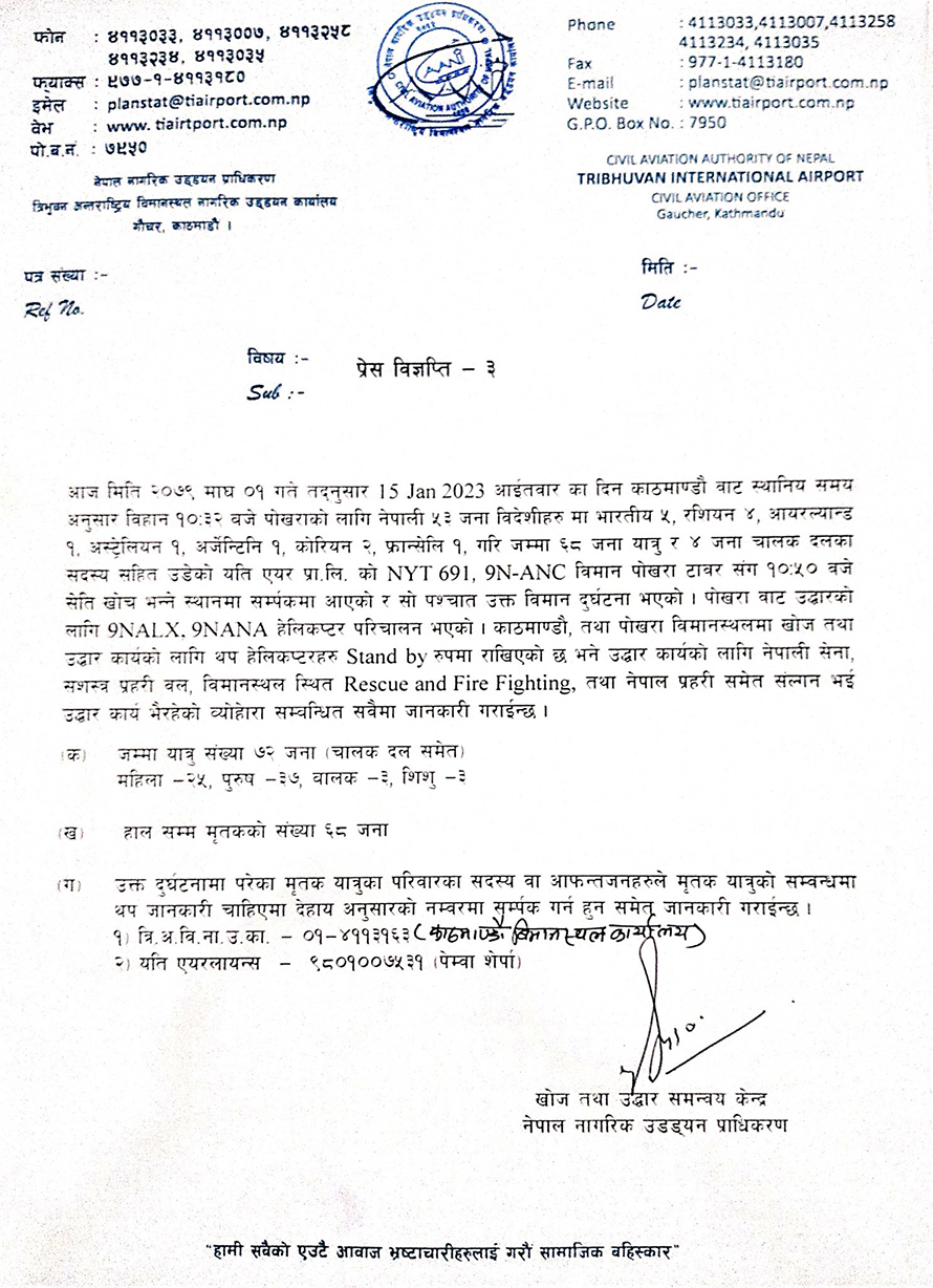 पोखराको विमान दुर्घटनामा ६८ जनाको मृत्यु पुष्टि
