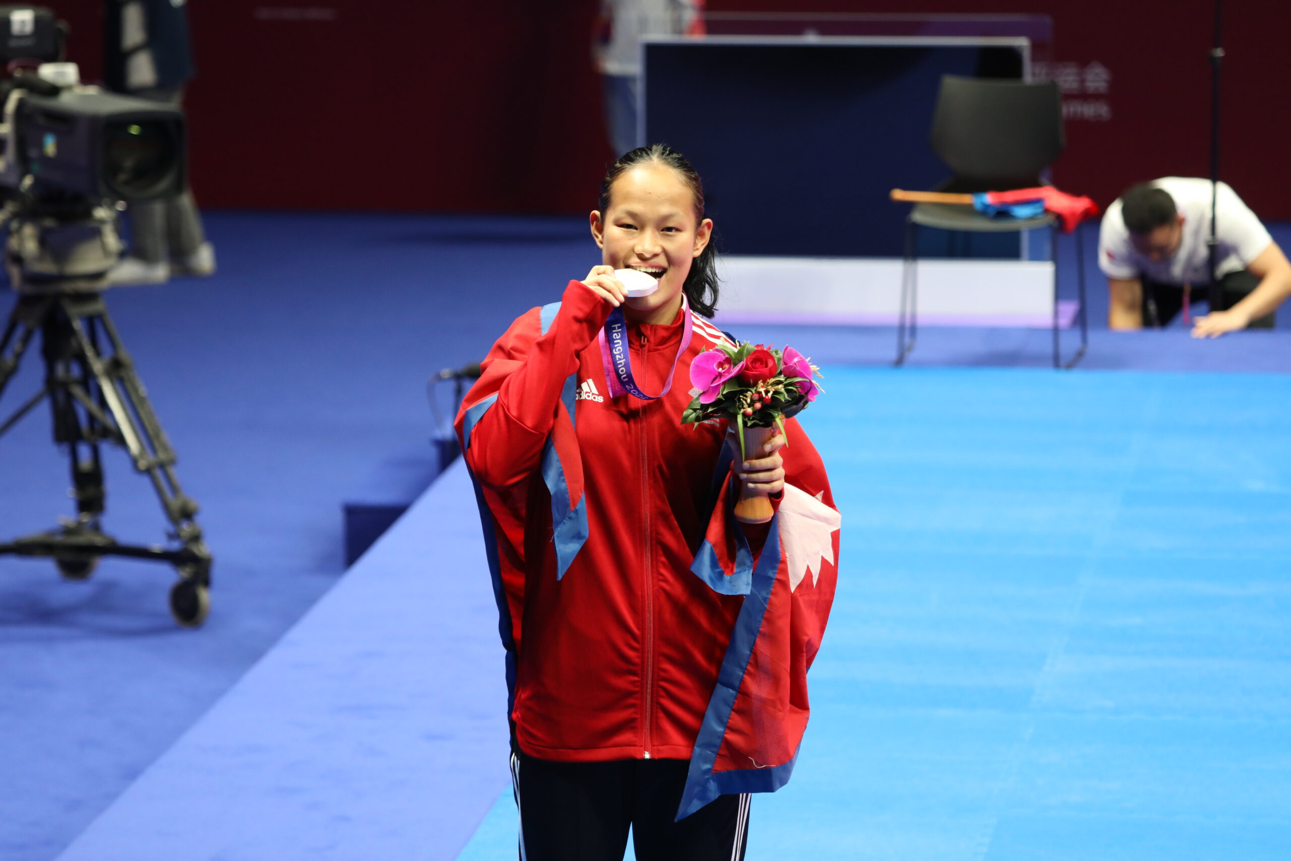 हाङचाओ (चीन) : चीनको हाङचाओमा जारी १९औं एसियाली खेलकुदमा नेपालले ऐतिहासिक रजत पदक जितेको छ । १९ वर्षीया एरिका गुरूङले करातेमा नेपाललाई ऐतिहासिक रजत पदक दिलाएकी हुन् । हाङचाओस्थित लिनिङ स्पोर्ट्स सेन्टर जिम्न्याजियममा शनिबार भएको महिला ६८ केजीमाथिको तौल समूहको फाइनलमा काजकिस्तानकी सोफ्या बेरुल्तसेभासँग ३–० अंकले पराजित भएपछि एरिका रजत पदकमा रोकिएकी हुन् ।