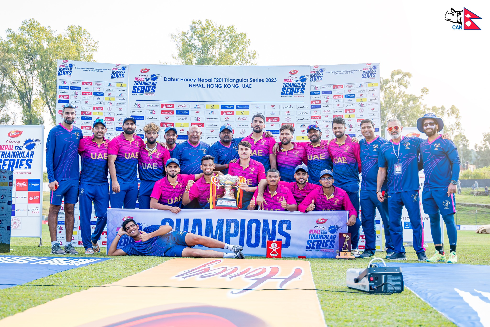 त्रिकोणात्मक टीट्वेन्टी शृंखलामा नेपाल अपराजित रहँदै फाइनल पुगेको थियो । लिग चरणका दुवै खेलमा नेपालले यूएईलाई पराजित गरेको थियो । शृंखलामा नेपालका करण केसी प्लेयर अफ दी सिरिज चुनिए । उनले मोटरसाइकल पुरस्कार पाए । करण प्रतियोगिताको उत्कृष्ट बलरसमेत बन्न सफल भए । उनले पाँच खेलमा १० विकेट लिएका थिए । यसैगरी यूएईका बसिल हमिद उत्कृष्ट ब्याटर चुनिए । उनले पाँच खेलमा एक सय ५९ रन बनाएका थिए ।