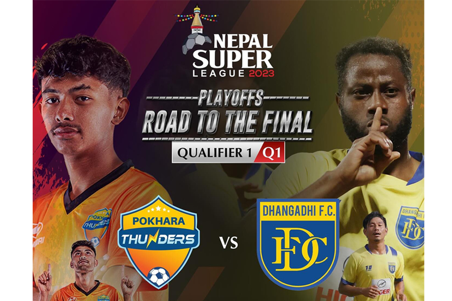 काठमाडौं : नेपाल सुपर लिग (एनएसएल) २०२३ मा आज देखि प्लेअफ चरणका खेलहरु हुँदैछन् । त्यो भनेको नकआउट खेल हुनेछ । ९ टोली सहभागी एनएसएलमा लिग चरणका ३६ खेल सकिएपछि शीर्ष चार टोलीले प्लेअफमा स्थान बनाएका थिए । त्यसमा पहिलो शीर्ष स्थानमा रहेको पोखरा थण्डर्स र दोस्रो स्थानको धनगढी एफसीबीच आज पहिलो क्वालिफायर हुनेछ । खेल त्रिपुरेश्वरस्थित दशरथ रंगशालमा साँझ साढे ५ बजे सुरु हुनेछ । यो खेल सेमिफाइनल जस्तै हुनेछ । जित्ने टिम सीधै फाइनल पुग्नेछ र उपाधिको एक कदम नजिक आफूलाई उभ्याउनेछ ।