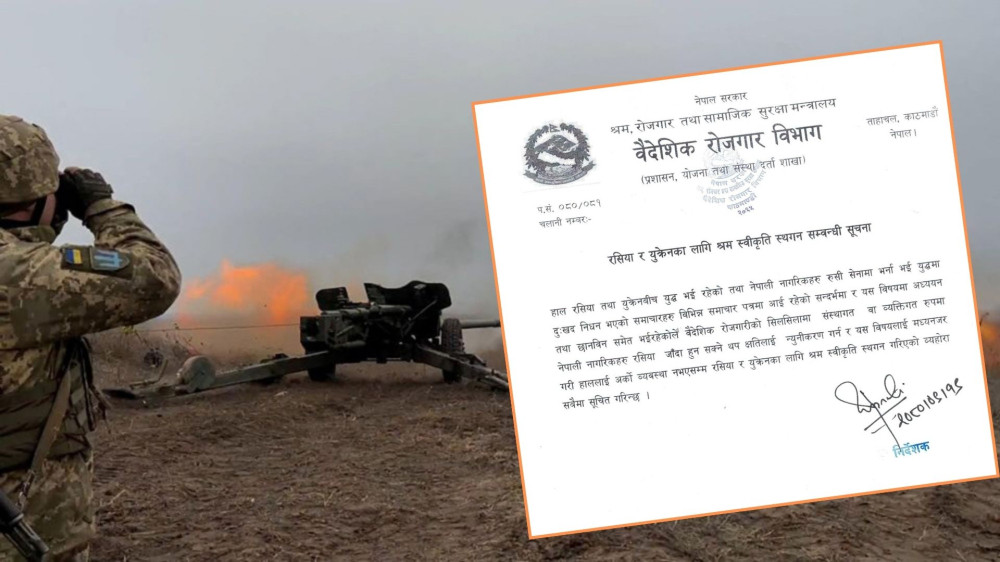 विभागले सूचना जारी गर्दै यी दुई देशमा वैदेशिक रोजगारीका लागि दिंदै आएको संस्थागत वा व्यक्तिगत श्रम स्वीकृति अर्को सूचना नआएसम्मलाई स्थगन गरिएको विभागका महानिर्देशक डण्डुराज घिमिरेले जानकारी दिए । ‘रुसी सेनामा गएर नेपालीहरुकाे मृत्यु भएको खबर आइरहेको छ’ उनले भने, ‘यस विषयमा अध्ययन तथा छानबिन पनि भइरहेकाले हाललाई श्रम स्वीकृति रोकेका छौं ।’