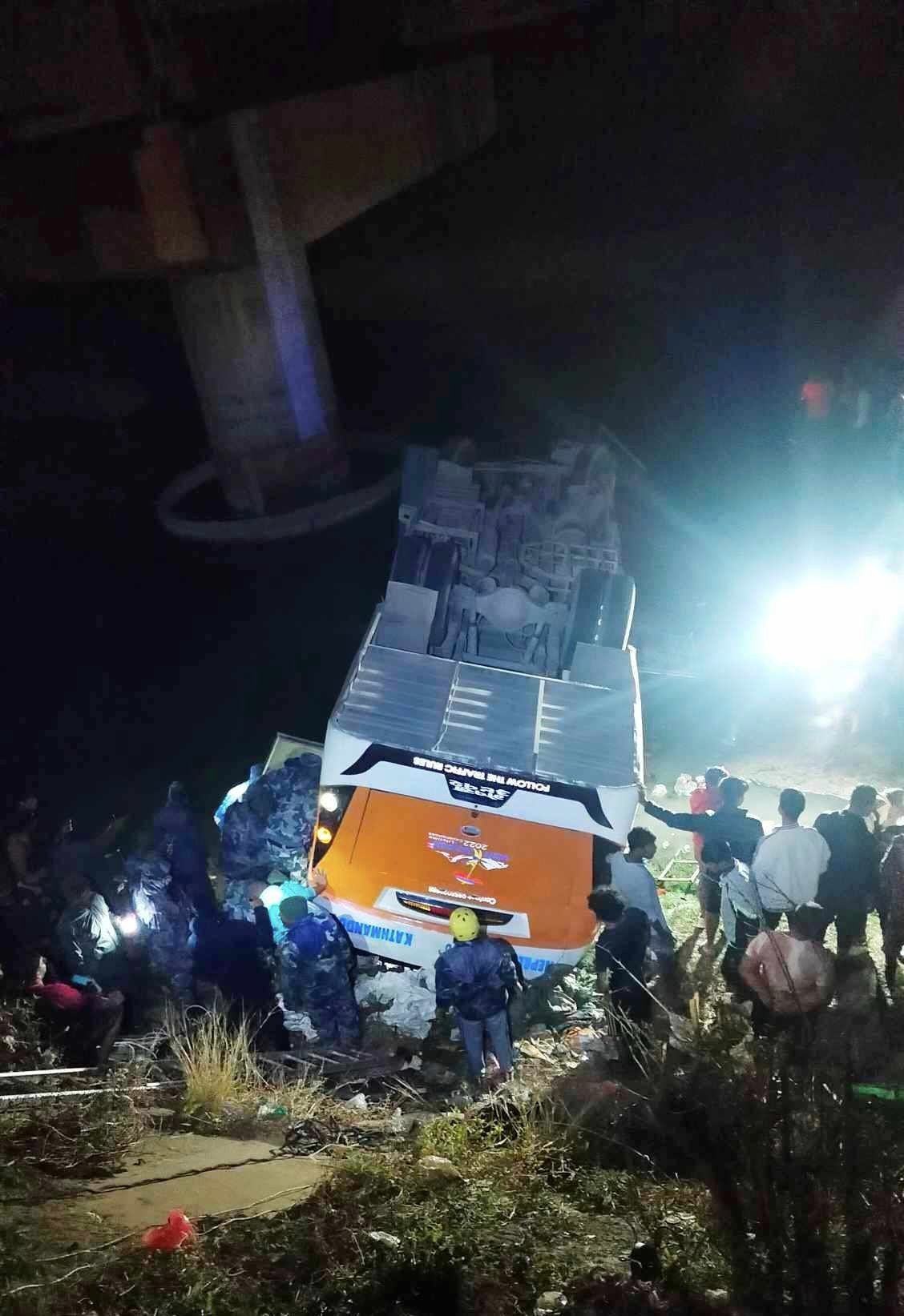 रूपन्देही : राप्ती नदीमा शुक्रबार राती खसेको बसमा १२ जना मृत्यु हुनुका साथै २३ जना घाइते भएका छन् । घाइते हुनेहरुमा सल्यान त्रिवेणी गाउँपालिका–४ बस्ने २८ वर्षीय चालक लालबहादुर नेपाली र सहचालक बाँके राप्तीसोनारीका–२ का ३१ वर्षीय कुलबहादुर गोसाई रहेका छन्।