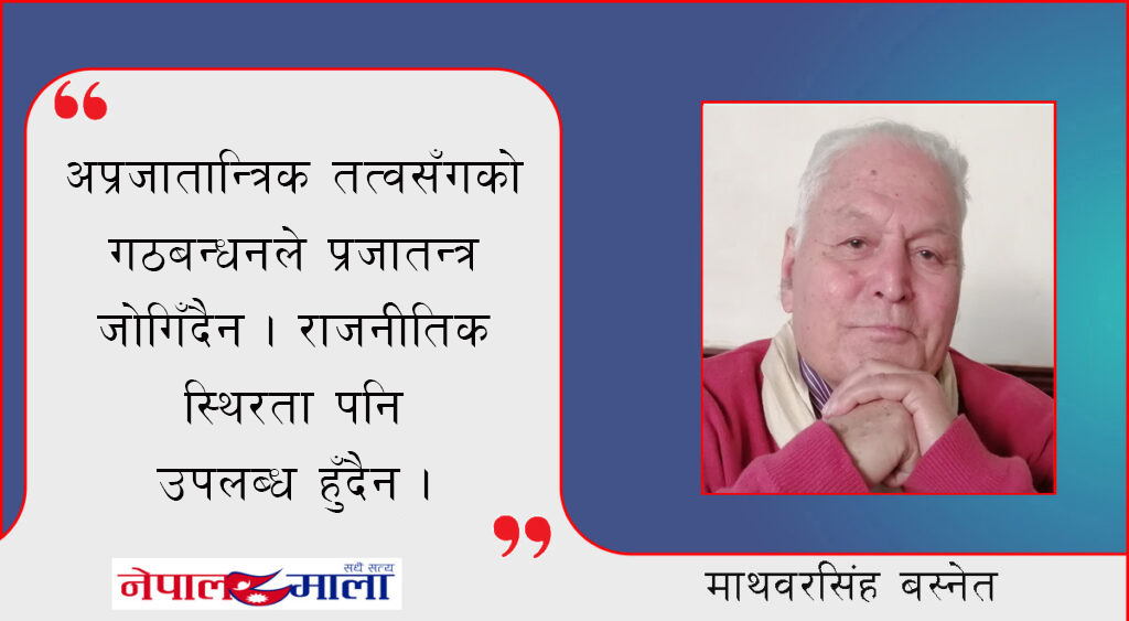नेपाली जनताको कांग्रेस र प्रजातन्त्रप्रतिको अविचलित आस्था र विश्वास नै नेपालको सुन्दर भविष्यको आश्वस्तता हो, मूल आधार हो । प्रजातन्त्रको पुनस्र्थापनापछिको संक्रमणकाल लम्बिएर अनेक प्रकारका उतारचढाव झेल्नु परेकाले संसदीय व्यवस्थाले राजनीतिक स्थिरता प्रदान गर्न नसकेको पक्कै हो । त्यो पनि नेपालको स्थायित्व र स्थिरतामा आफ्नो अहित देख्ने छिमेकी, प्रजातन्त्रलाई जनवादसम्म पुग्ने रणनीति मात्र ठान्ने र मान्ने नितान्त अविश्वसनीय कम्युनिस्टसँगको पार्टनरसिप र परम्परागत शक्तिलाई प्रतिनिधित्व गर्ने राप्रपाको कमजोर उपस्थिति मात्र होइन, अस्थिर नीतिका कारण स्थिरताको मियो थाम्ने दायित्व एक्लो कांग्रेसका काँधमा आइपरेकाले अस्थिरताको आयु अस्वाभाविक ढंगले लम्बिन पुगेको हो ।