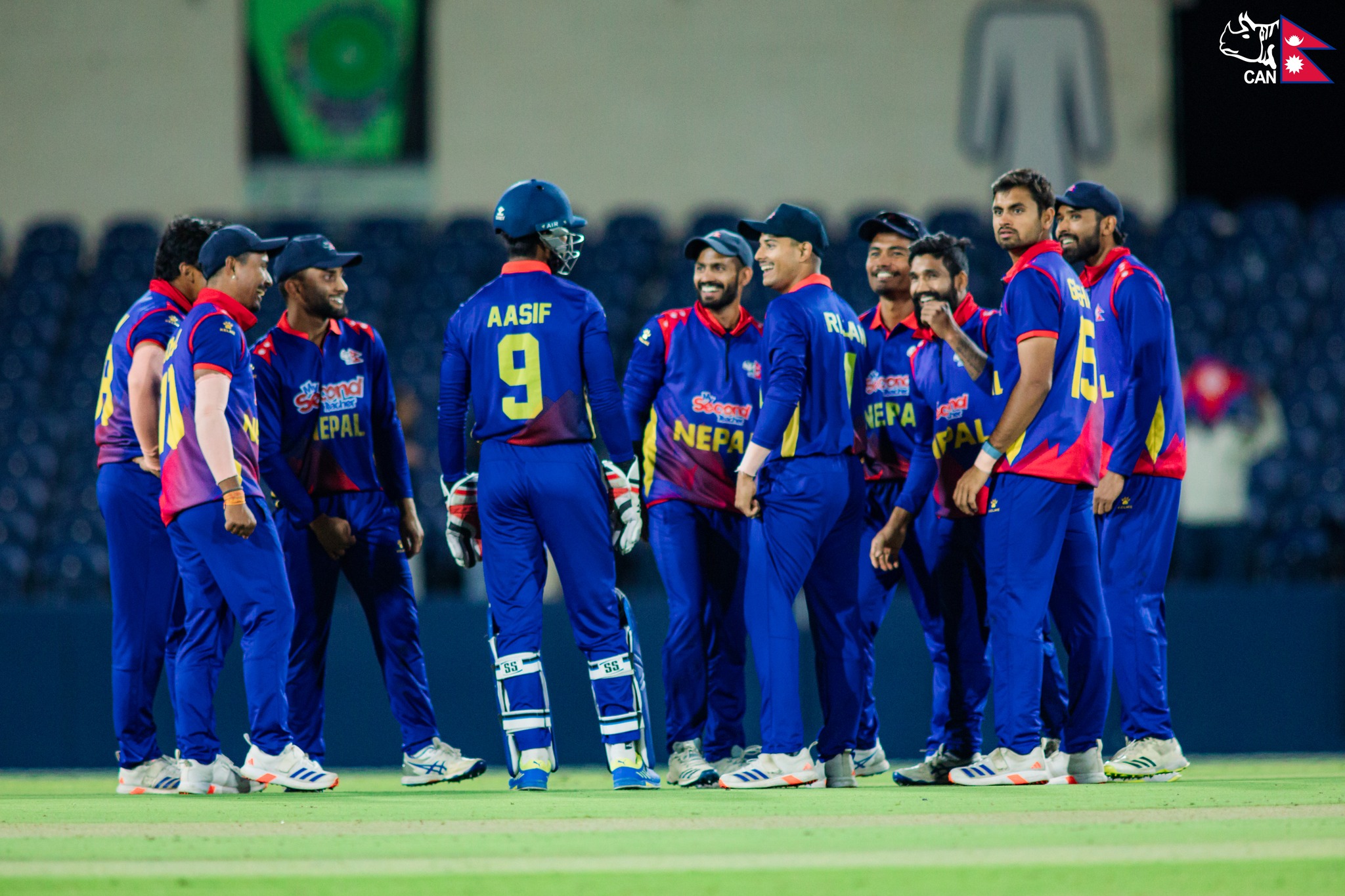 नेपालका दीपेन्द्रसिंह ऐरीले १ छक्का र २ चौकासहित २८, ओपनर अनिल शाह र आसिफ शेखले समान २७/२७, गुल्शन झाले ११, कुशल भुर्तेलले १० र सोमपाल कामीले २ रन जोडे । करन केसी र आरिफ शेख शून्य रनमा आउट भए ।