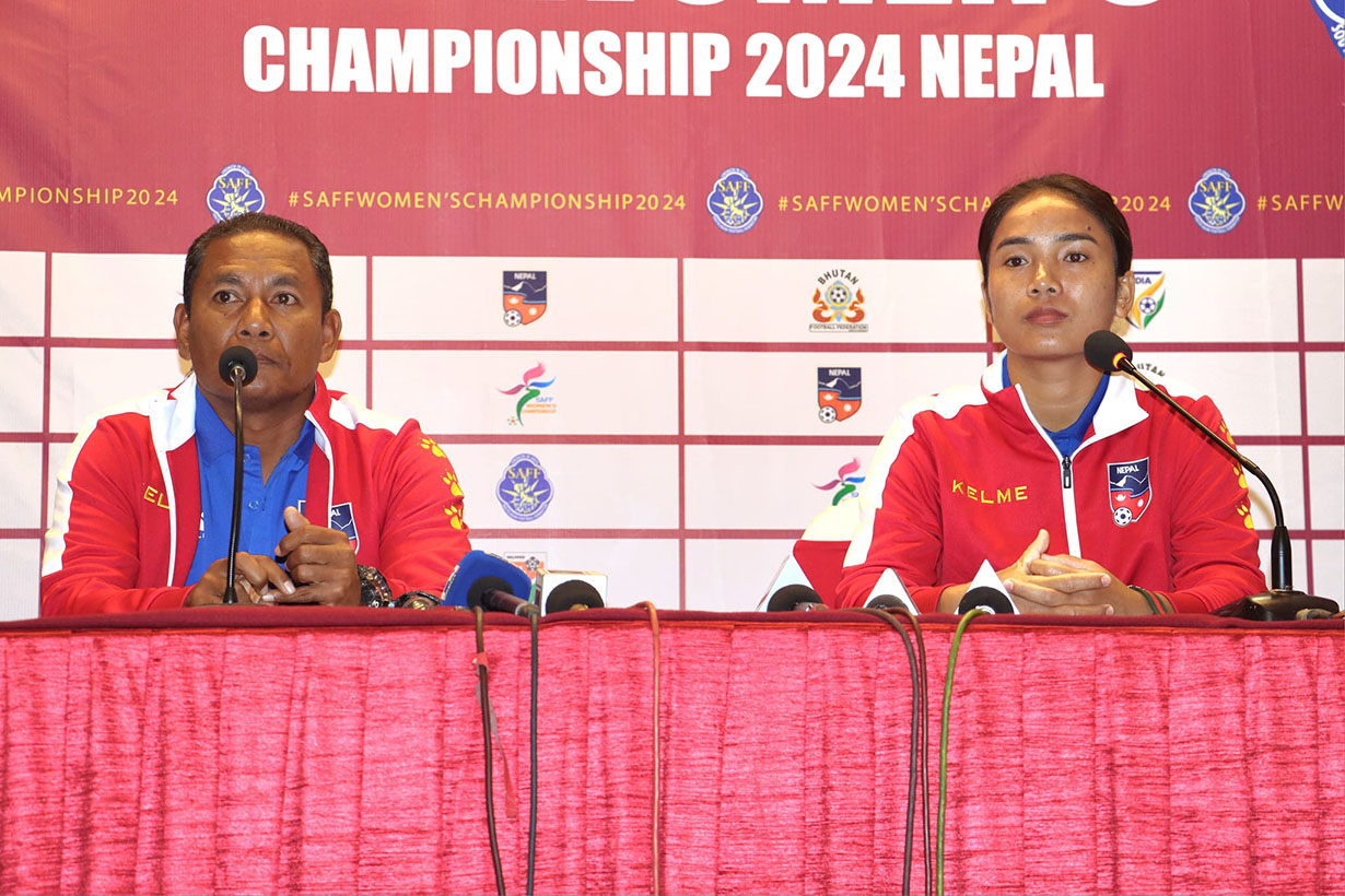 काठमाडौं : गोल मेसिन भनेर चिनिएकी मुख्य स्ट्राइकर सावित्रा भण्डारी ‘साम्बा’ विना नै नेपालले घरेलु मैदानमा भइरहेको साफ वुमन्स च्याम्पियनसिप-२०२४ मा भुटानसँग आज पहिलो खेल खेल्दैछ । खेल त्रिपुरेश्वरस्थित दशरथ रंगशालमा साँझ साढे ५ बजे सुरु हुनेछ । भुटानविरुद्ध लगातार गोल गर्दै आएकी साम्बा फ्रेन्च महिला लिगमा व्यस्त रहेकोले उनले पहिलो खेल गुमाउने भएकी हुन् । यसअघि साफ च्याम्पियनसिपमा भुटानसँग खेलेको हरेक खेलमा सावित्राले गोल गरेकी थिइन् । नेपालका लागि ४६ खेल खेल्दै सावित्राले सर्वाधिक ५३ गोल गरेकी छन् ।
