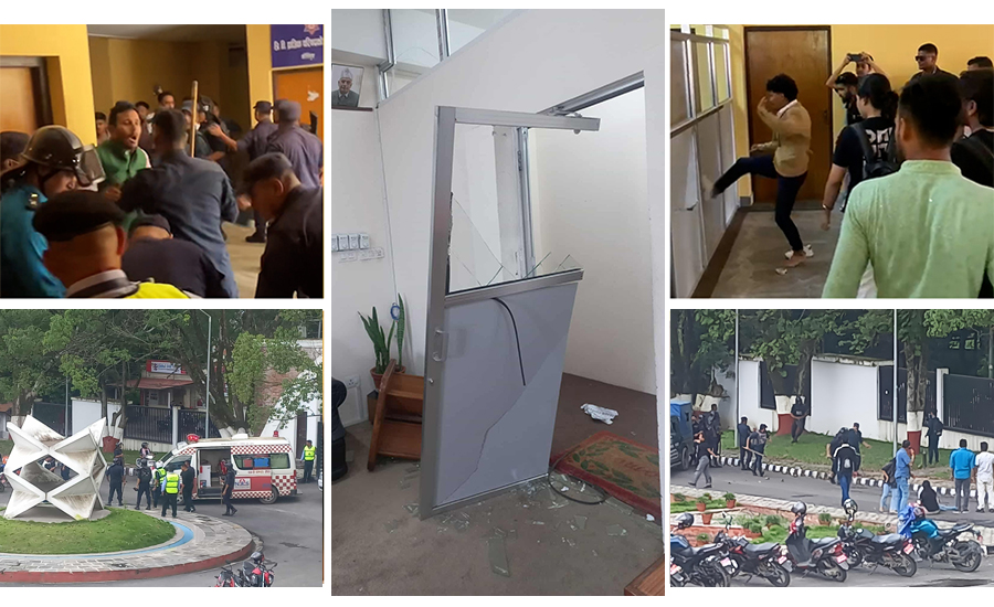 काठमाडाैं : प्राज्ञिक थलो त्रिभुवन विश्वविद्यालयमा सोमबार माओवादी निकट विद्यार्थी संगठन अखिल क्रान्तिकारी समर्थित विद्यार्थीले तोडफोड गरे । रजिस्ट्रार कार्यालयमा ढोकाको सिसा र गमला फुटाइयो । ‘नाराबाजीसहित एउटा समूह आएको थियो । अपशब्द बोल्दै तोडफोड गरे । रजिस्ट्रार सर कार्यकक्षमै हुनुहुन्थ्यो,’ रजिस्ट्रार कार्यालयका एक कर्मचारीले भने ।