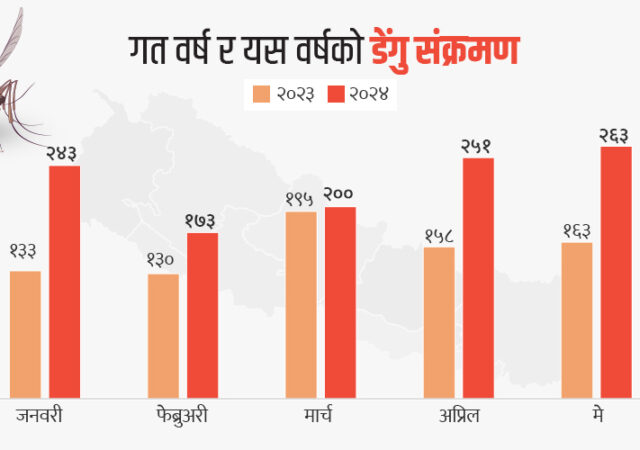 काठमाडौं : हिजोआज काठमाडौं उपत्यका र देशका धेरै जिल्लामा डेंगुको संक्रमण बढ्दै गइरहेको छ । सन् २०२४ को सुरू अर्थात गत पुसको मध्यदेखि जुन महिनाको दोस्रो साता अर्थात् हालसम्म १ हजार १७५ जनामा डेंगु संक्रमण पुष्टि भएको छ । इपिडिमियोलोजी…
