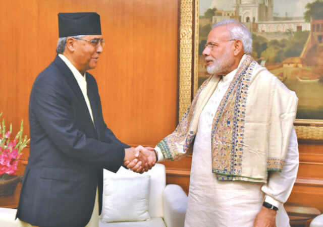 भारतीय प्रधानमन्त्री मोदीसँग परराष्ट्रमन्त्री देउवाको भेट