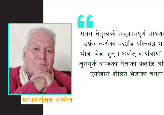 नेपालको प्रजातान्त्रिक आन्दोलनका लौहपुरुष गणेशमान सिंहले एक पटक मात्र होइन, धेरै पटक भन्नुभएको थियो– नेपाली जनता भेडा–बाख्रा हुन् । सन्दर्भ र प्रसंग मिलाएर उहाँले आमसभामा त्यसोभन्दा पनि जनताले हुटिङ नगरेर उल्टो समर्थनमा ताली बजाएको देख्दा बुद्धिजीवीहरू आश्चर्यचकित हुन्थे । जनताले…