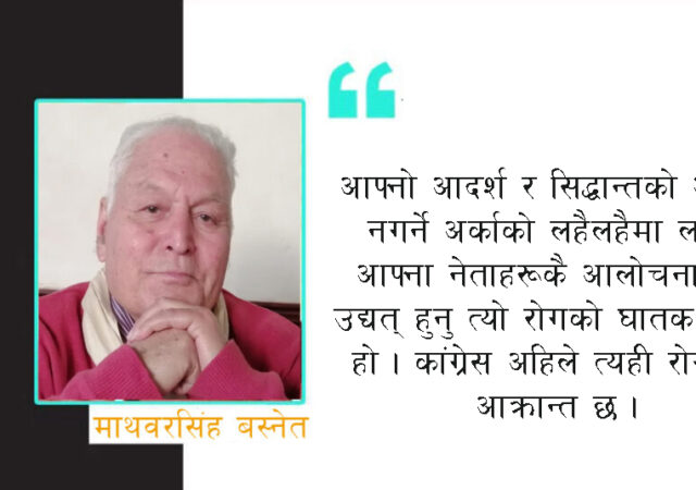 नेपाली कांग्रेसका शीर्षस्थदेखि विभिन्न तहका नेता तथा कार्यकर्ता सबैमा देखिने आमरोग हो– आत्मविश्वासको संकट । त्यसको पहिलो लक्षण पनि विचित्रको छ । आफू पटक्कै अध्ययन र मनन् नगर्ने, कौवाले कांग्रेसको कान लग्यो भनेको सुन्नेबित्तिकै कागका पछाडि आँखा चिम्लेर दौडिने ।…